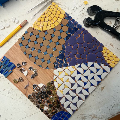 Régulièrement, je m'atèle à l'exploration du graphisme, au travail des formes, à la création d'agencements de tesselles non conventionnels.